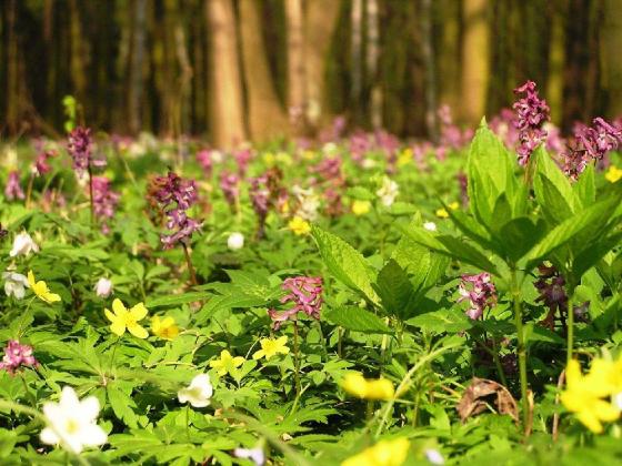 Warstwa runa charakteryzuje się bardzo wysokim w wielu miejscach pełnym pokryciem. W jej skład wchodzą liczne gatunki tworzące charakterystyczny aspekt wiosenny. Na uwagę zasługują występujące tam gatunki podlegające ochronie całkowitej lub częściowej.