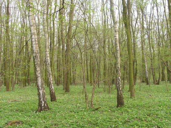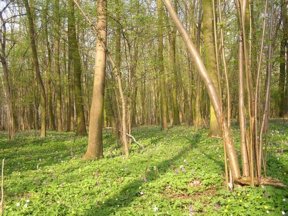 Najwyższe piętro tego lasu zróżnicowane jest na dwa poziomy: wyższy utworzony przez dąb szypułkowy (Quercus robur) i jesion wyniosły (Fraxinus excelsior) oraz niższy, w którym dominuje grab zwyczajny (Carpinus Betulus) i klon jawor (Acer pseudoplatanus). Drzewa te dobrze się odnawiają, o czym świadczy ich obecność w podszycie oraz w runie. W prześwietlonych partiach lasu licznie występują też leszczyna (Coryllus avellana), a także dereń świdwa (Cornus sanquinea), trzmielina zwyczajna (Evonymus europea) i czeremcha zwyczajna (Paddus avium).